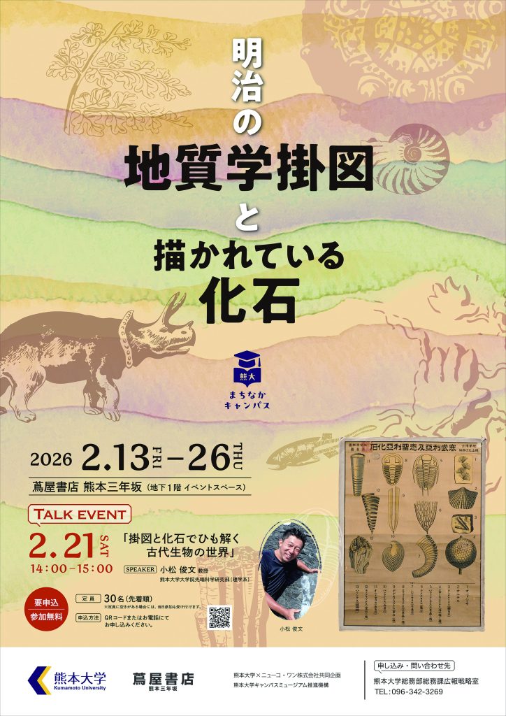 このたび、その一環として、熊本大学による企画展 「明治の地質学掛図と描かれている化石」 を蔦屋書店熊本三年坂にて開催いたします。
